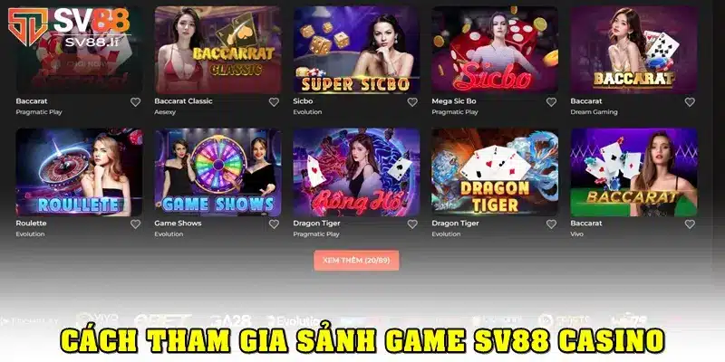 SV88 là một trong những nhà cái hàng đầu hiện nay, nổi tiếng với dịch vụ chuyên nghiệp và các sảnh game đa dạng, một trong số đó chính là sảnh casino.